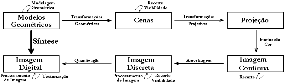 · Imagem Contínua: Determinação da luminância ou brilhância de cada ponto da imagem considerando que existam fontes luminosas pertencentes ao modelo;