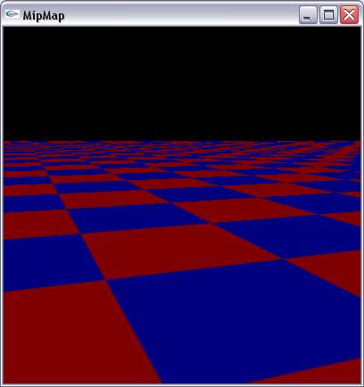 OpenGL selecionará automaticamente o melhor nível de detalhe a ser usado para a textura, mas pode ser definido com a função glTexParameter() usando GL_LINEAR_MIPMAP_NEAREST, por exemplo. Obtemos os seguintes resultados com a implementação: