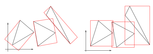 Figure 1: Caixas limitantes não paralelas e paralelas aos eixos de referência, respectivamente.