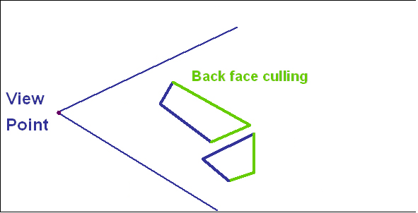 A técnica de back-face culling tem como objetivo remover as faces do objeto que estão "de costas" para o observador. Isto é feito através da verificação do ângulo formado entre o vetor normal da superfície do objeto n = (nu,nv,nn) e um raio de visao V = (0,0,-1) no espaço normalizado. O ângulo é dado pela seguinte equação: