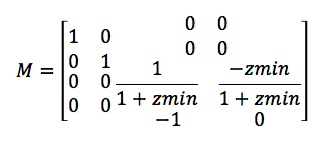 A matriz M transforma o volume de visão normalizado da projeção em perspectiva em um paralelepípedo limitado por -1 <= x <= 1, -1 <= y <= 1, -1 <= z <= 1.