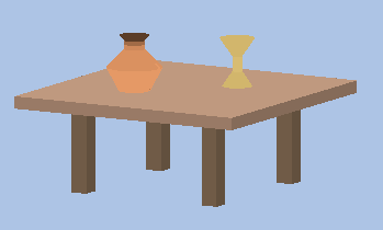 A junção das imagens foi obtida a partir da simples colagem dos códigos de cada uma delas.A maior dificuldade nesta fase foi conseguir que todos os objetos tivessem a mesma coerência espacial, o que foi possível usando os recursos de transformação geométrica para ajustar p posicionamento e a escala de cada objeto.O resultado final pode ser visto a baixo.